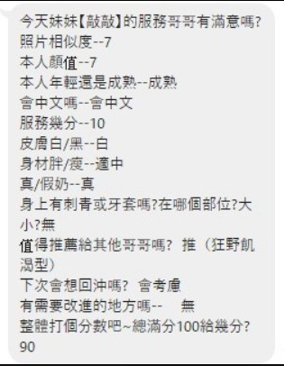2S+500(60分)、口爆+500、顏射+500、自慰秀+500、無套內射+1000、攝影+1000(不拍臉)、絲襪+100、0.01套+100