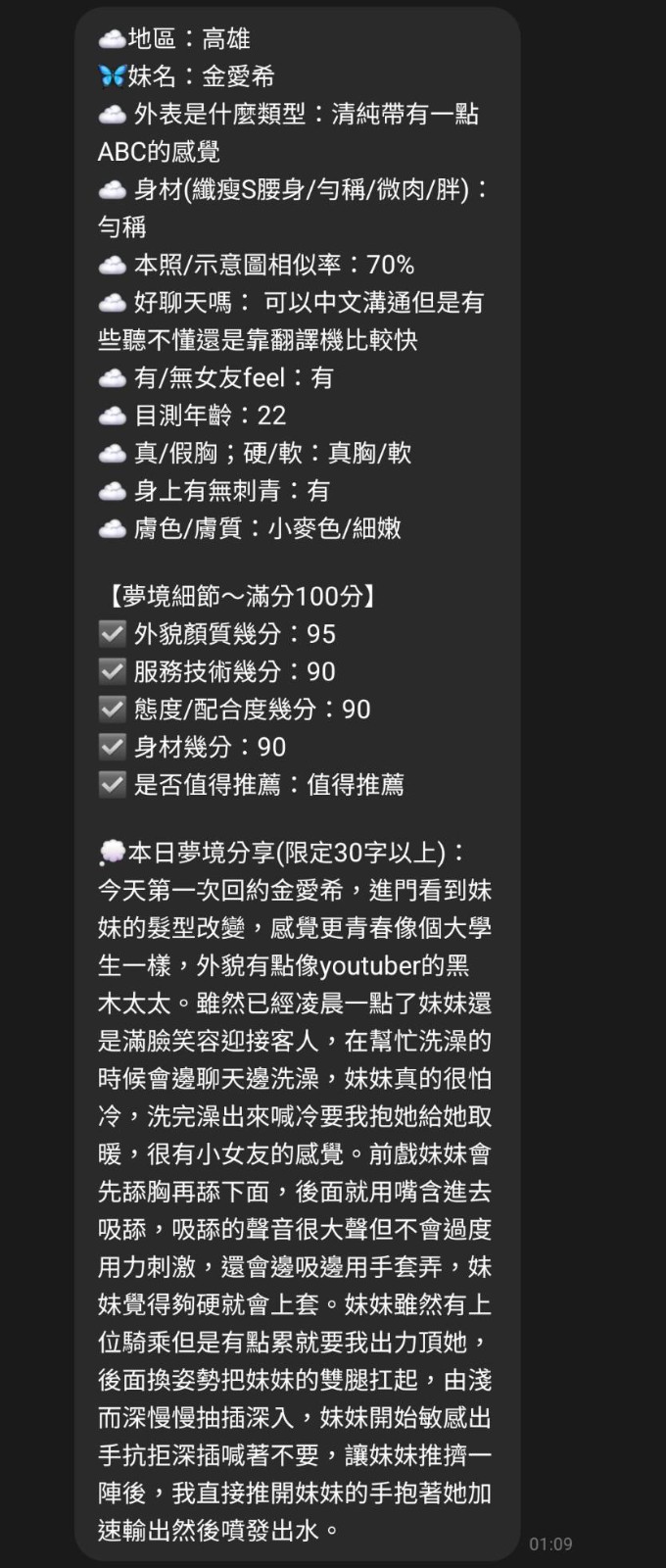 奶砲按摩69陪洗共浴LG(舌吻)依氣氛衛生而定可親嘴無套吹品鮑舔蛋顏射深喉嚨變裝玩具(按摩棒)玩具(跳蛋)情趣用品(客自備)自慰秀快餐2S