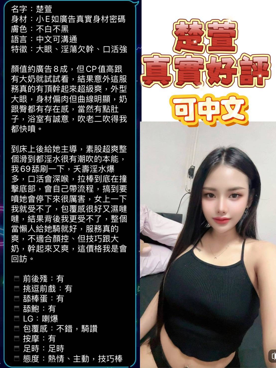 奶砲按摩69共浴LG(舌吻)依氣氛衛生而定可親嘴無套吹口爆品鮑舔蛋奶推絲襪(自備免付)玩具(按摩棒)玩具(跳蛋)情趣用品(客自備)中文溝通快餐2S